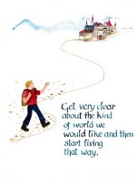 Christiane Lesch illustrated the sayings. As a result of our discussions one folder in English and one in German, each containing 13 different and wonderful pictures, were created. The German and the English maps contain different sayings and pictures. The German map is called : “Sei nicht nett, sei echt”, quoting Kelly Bryson.